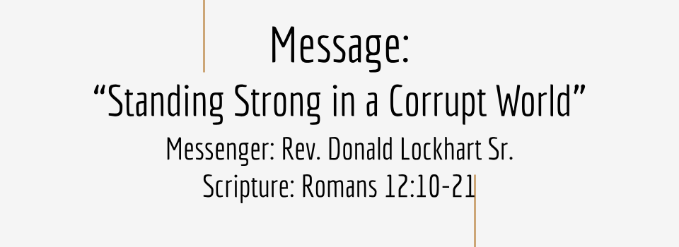 Standing Strong in a Corrupt World July 13, 2025 by Rev. Donald Lockhart Video Message: “Standing Strong in a Corrupt World” Messenger: Rev. Donald Lockhart Sr Scripture: Romans 12:10-21