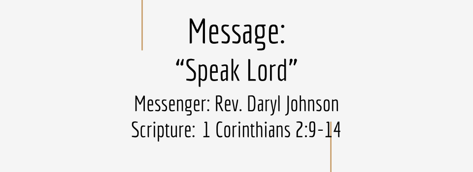 Speak Lord July 27, 2025 by Rev. Daryl Johnson Video Message: “Speak Lord” Messenger: Rev. Daryl Johnson Scripture: 1 Corinthians 2:9-14