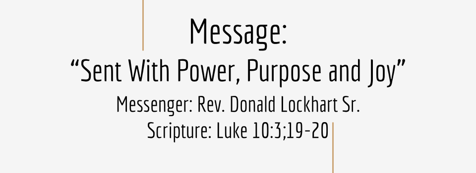 Sent With Power, Purpose and Joy July 6, 2025 by Rev. Donald Lockhart Video Message: “Sent With Power, Purpose and Joy” Messenger: Rev. Donald Lockhart Sr Scripture: Luke 10:3;19-20