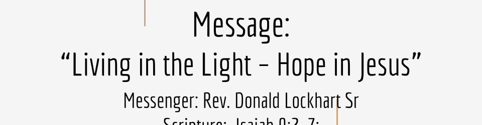 Living in the Light – Hope in Jesus November 30, 2025 by Rev. Donald Lockhart Click here to view the full service